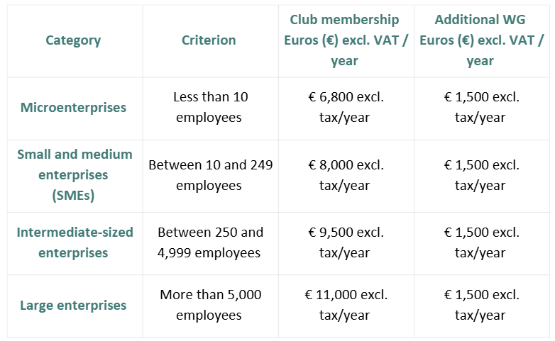As part of their commitment, each Member is individually required to pay a fixed annual contribution as set out in the price list below (amounts in Euros excluding VAT; the VAT rate applicable is that in force at the time the service is invoiced).