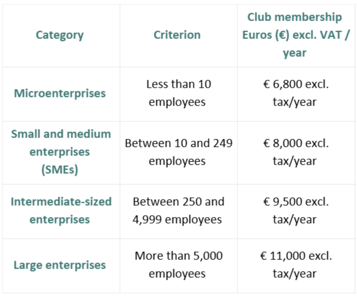 As part of their commitment, each Member is individually required to pay a fixed annual contribution as set out in the price list below (amounts in Euros excluding VAT; the VAT rate applicable is that in force at the time the service is invoiced).